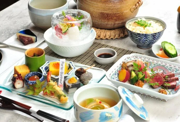 2022年 文月御祝会席●椀物 鱧真薯 茄子すり流し 管牛蒡 陸鹿尾菜 梅肉 柚子 ●前菜 ・海老白滝揚げ ・蛸柔らか煮 胡麻酢 ・玉蜀黍豆腐 いくら ・姫栄螺旨煮 ・和風カステラ ・べっ甲玉子 醤油ジュレ ・石垣小芋 柚子味噌 ●造里 鯛松皮 鮪 水烏賊…