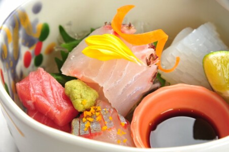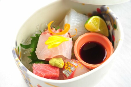 ●造里 天然鯛の松皮 縞鯵 鮪 水烏賊 あしらい一式