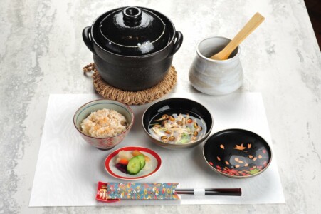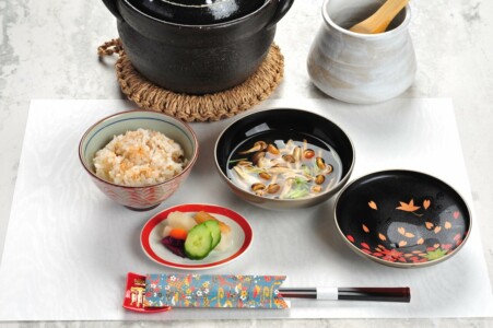 ●飯物 蕎麦の実めし きのこ汁 香の物