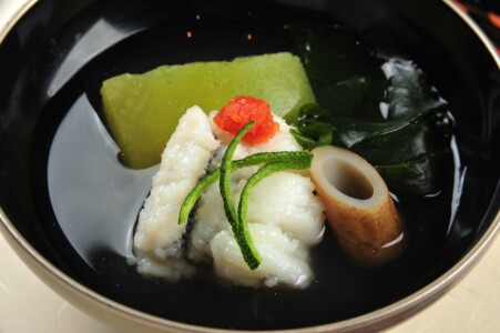 ●御椀 鱧葛打ち 冬瓜 若芽 梅肉 柚子