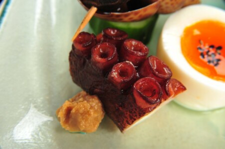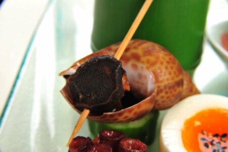 ●前菜 じゅん菜 叩きオクラ ・水無月豆腐 花丸胡瓜 小豆 ラディッシュ ・幸福玉子 ・鮎一夜干し ・海老白滝揚げ ・和風カステラ ・バイ貝 地蛸柔らか煮