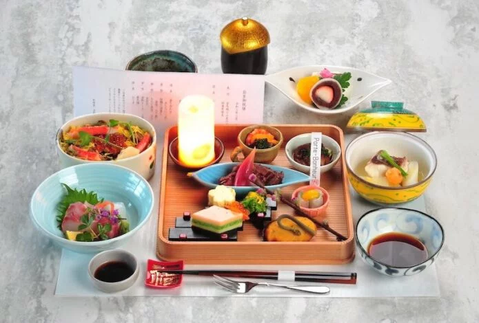 2021年 水無月御祝膳竹籠盛り ●造里 旬魚盛合わせ あしらい一式 ●八寸 水無月豆腐 ・枇杷玉子 割醤油ジュレ ・湯引き地蛸の琥珀寄せ ・帆立の豆乳蒸し 順才 焼茄子 銀餡 振り柚子 ・黒毛和牛ランプ炭火焼き ・かます酒盗焼き ・地鶏肝チーズ焼き ・焼鱧鮨…