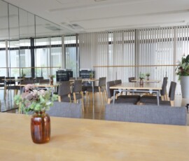 冬の柔らかな日差しが大きな窓から降り注ぎ、訪れる人々を優しく包み込みます。