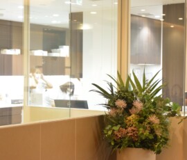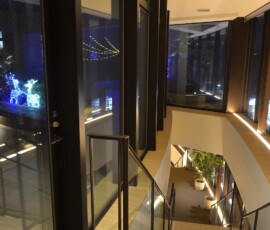 エントランスを抜けると広がるのは、ガラスと木目が美しく調和したロビー。