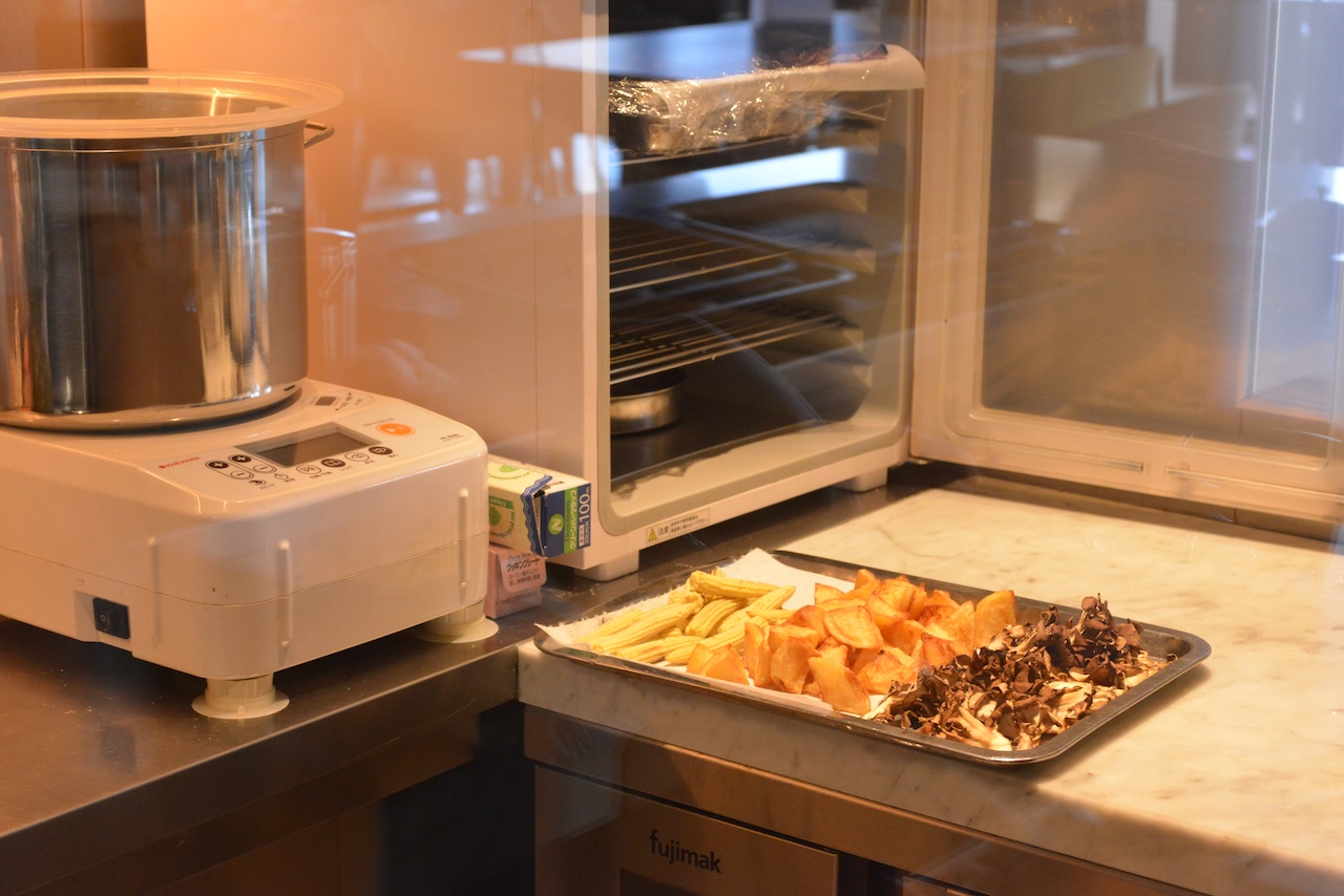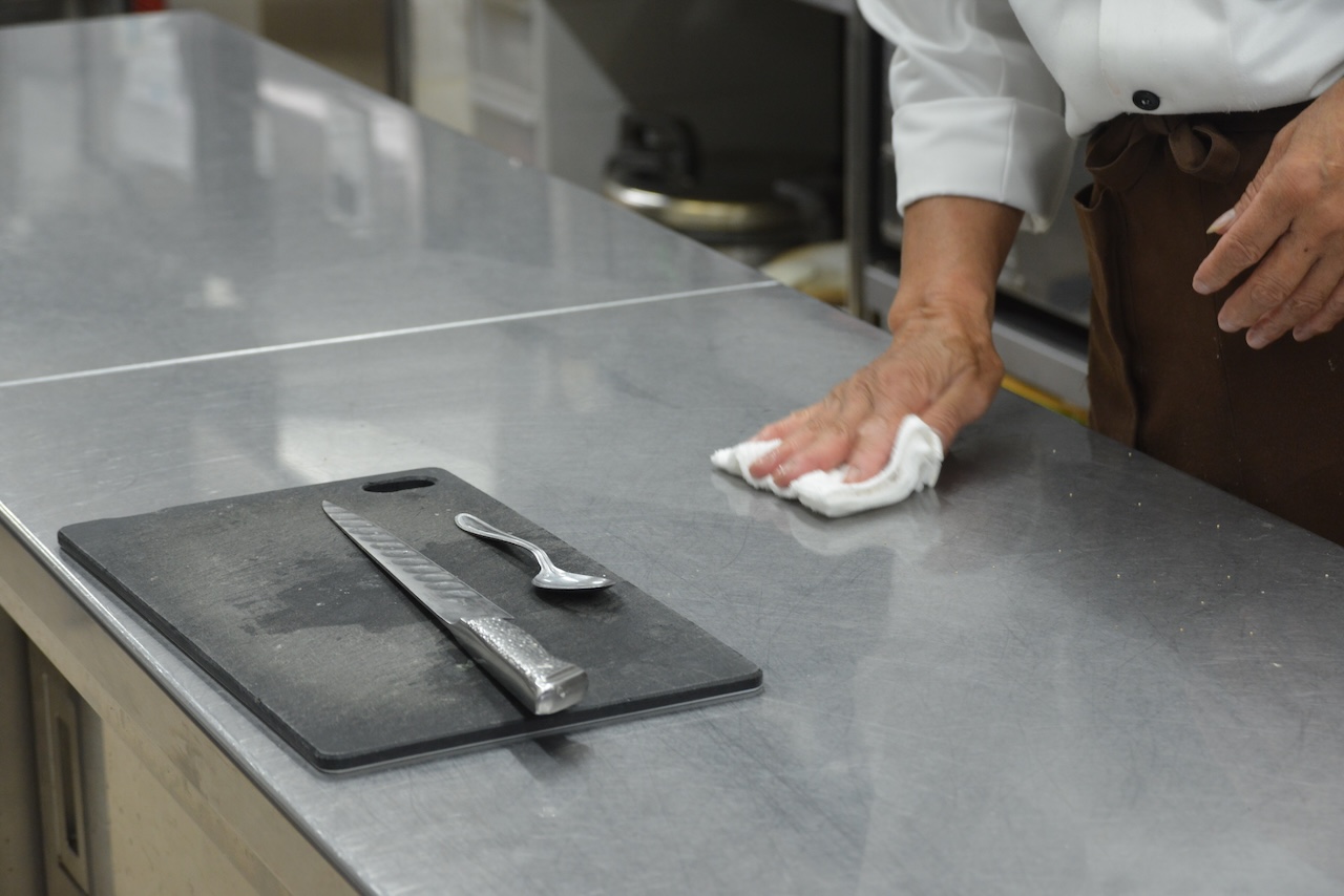 藤東クリニック併設のレストラン「Porte Bonheur」の厨房は、清らかな静寂に包まれています。ここで聞こえるのは、リズミカルに食材を刻む音や、鍋が穏やかに煮える音だけ。料理人たちは会話さえも控え、ただひたすらに目の前の一皿と向き合います。それは、食材の声に静かに耳を傾け、その持ち味を最大限に引き出すための作法です。この静寂こそが、産後のお母様の繊細な心身に寄り添う、深く優しい味わいを創り出す源泉となっています。