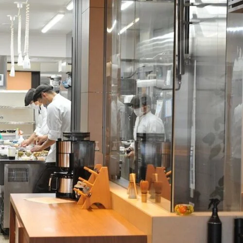 「Porte Bonheur」のキッチンで作られる料理は、利用者様の日々の健康と幸福を願う、私たちの熱意が詰まったものです。利用者様にとっての特別な瞬間を、美味しい料理と共にお過ごしいただけることを心から願っています。藤東クリニックと併設レストラン「Porte Bonheur」は、利用者様の健康と幸せを第一に考え、日々進化し続けることをお約束します。