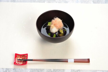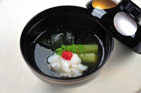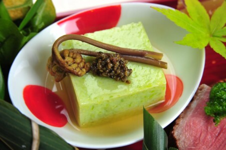 ●椀物 鱧の葛打ち 若芽 蓮芋 梅肉 木の芽
