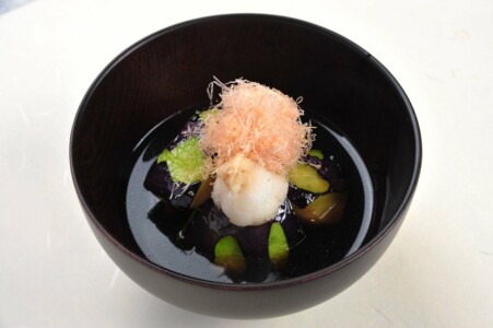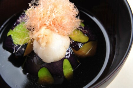 ●蒸物 加茂茄子揚出し 大根おろし 生姜 糸花鰹