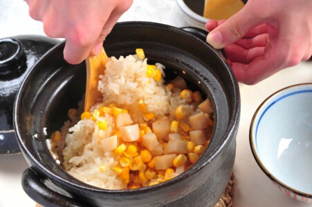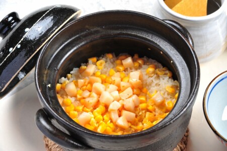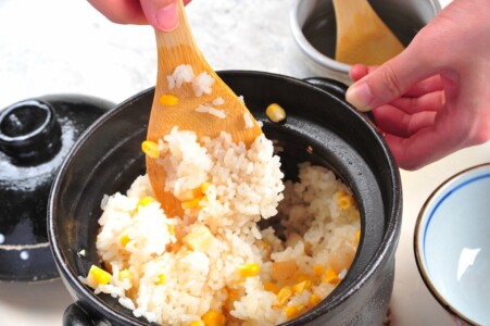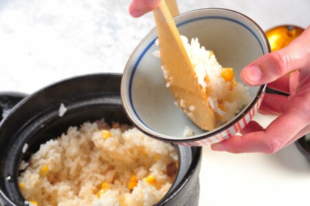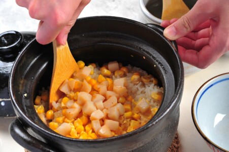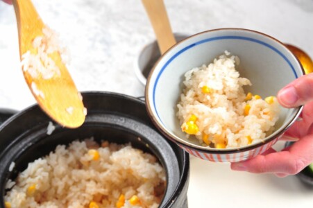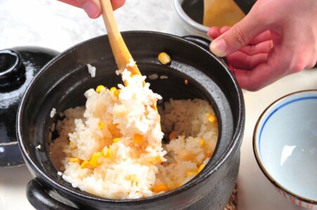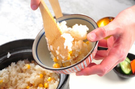 ●飯物 とうもろこしごはん ・香の物 ・味噌汁