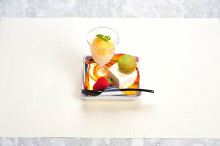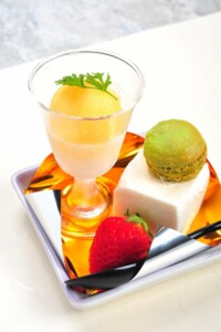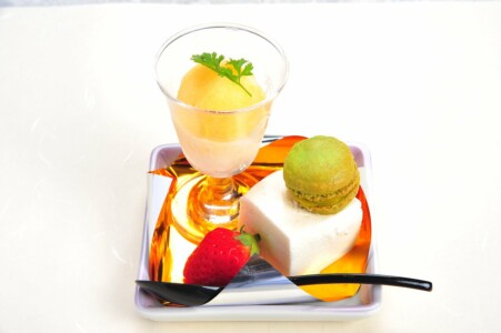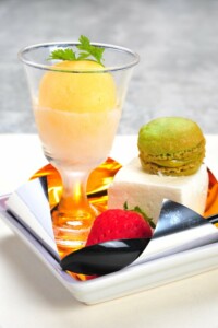 ●甘味 三宝柑シャーベット ・酒粕ムース ・苺 ・ピスタチオのマカロン
