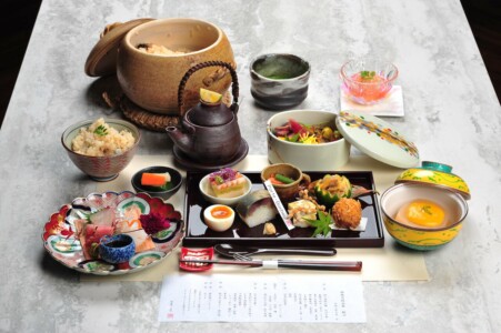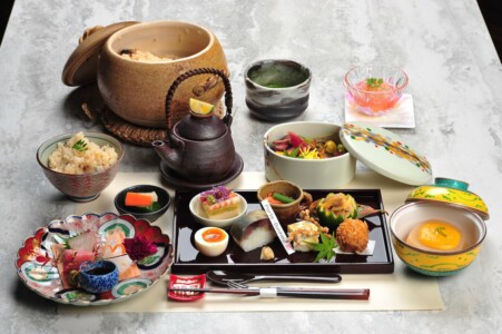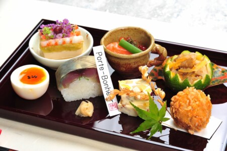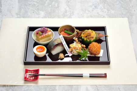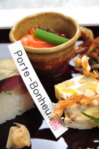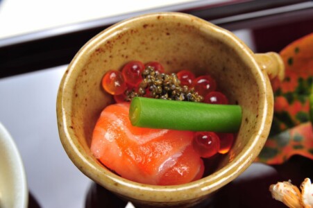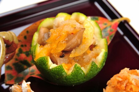 ●前菜 柿と湿地の膾 かぼす釜 ・鮭親子和ゑ ・栗の白秋寄せ ・鯖の棒寿司 ・小芋柿ピー揚げ ・茄子萩豆腐 ・幸福玉子 ・稲穂