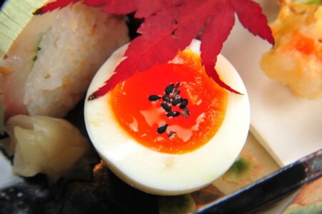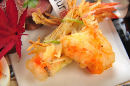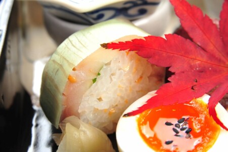 ●前菜 ・菊かぶら 柚子味噌 ・鮟鱇の肝時雨煮 ・鯖鮨 ガリ ・真鴨の松葉独活巻き ・才巻海老八幡揚げ ・幸福玉子