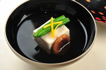 ●椀物 蟹真薯 三度豆 柚子 清汁仕立て