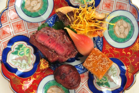 ●強肴 ・黒毛和牛ざぶとん炭火焼き ・かます東寺焼き ・鶏松風 ・渋皮栗 ・筆茗荷