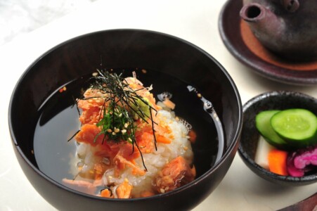 ●飯物 鮭茶漬け 薬味 香の物