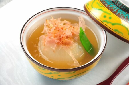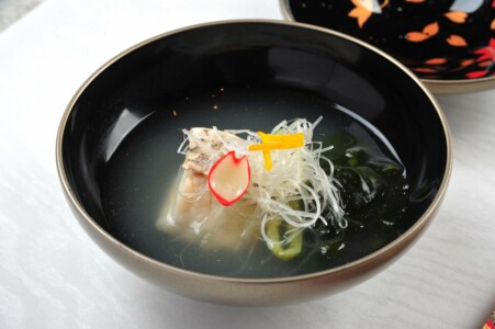 ●椀物 鯛の潮汁仕立て 若芽 花弁 白髪葱 柚子