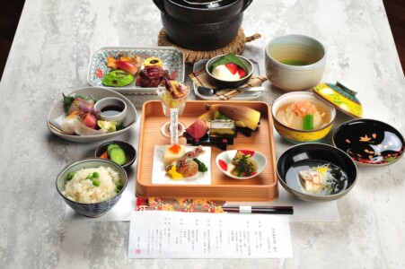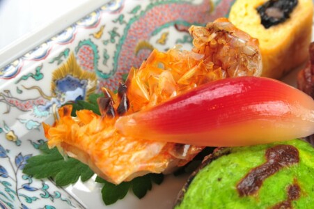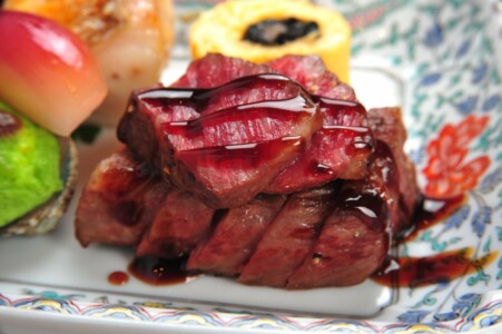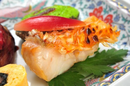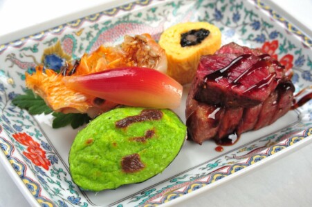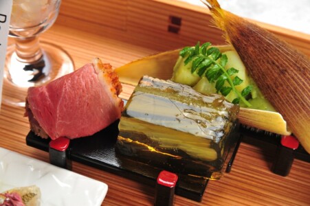 ●強肴 黒毛和牛ランプ炭火焼き ・甘鯛松笠焼き ・京巻き玉子 ・床伏若草焼き ・酢取り茗荷
