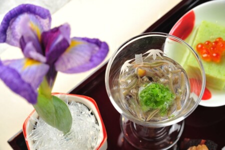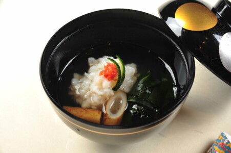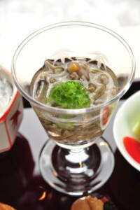 ●御椀 鱧葛打ち 新順才 若芽 青瓜 梅肉 柚子