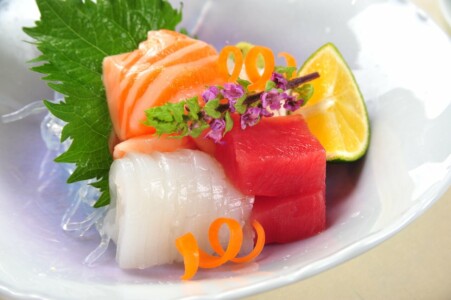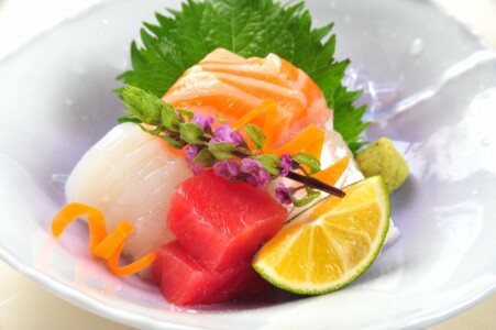 ●造里 鰹タタキ 鮎並焼霜 生海胆 土佐醤油 あしらい一式