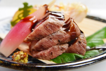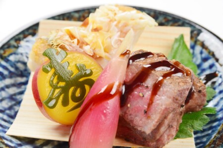 萩真薯の豆乳蒸しは、紅葉麩や絹鞘、生姜と共に秋の優しい味わいを演出。強肴では、黒毛和牛ざぶとんの炭火焼きや秋鮭の杉板焼きなど、秋の味覚の数々が舌を踊らせます。
