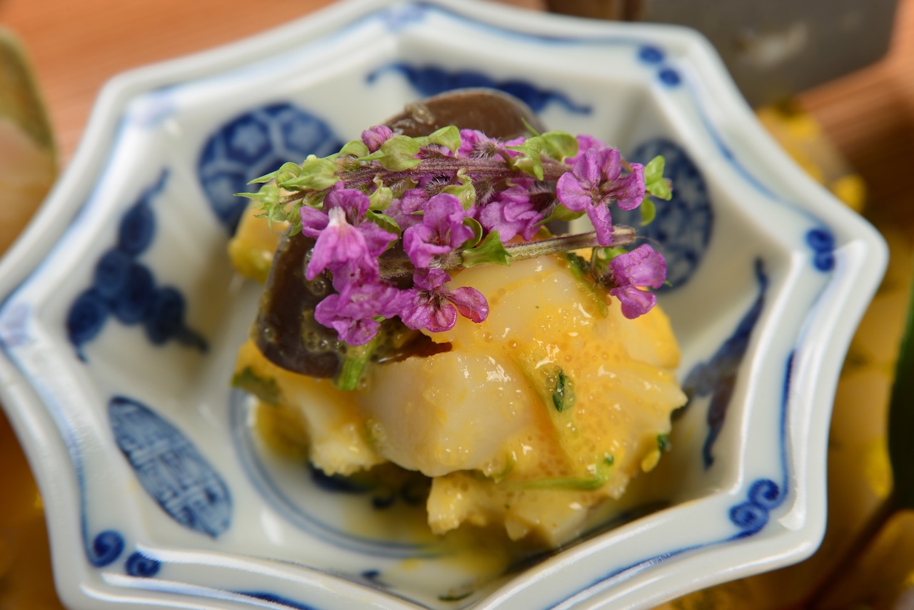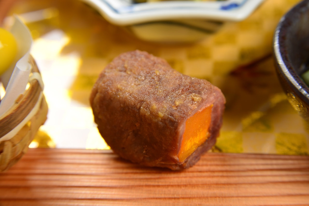 華やかさと力強さが共存する一皿。炭火で焼き上げた黒毛和牛から香る香ばしさが深く、鮭粕の飛龍頭がとろけるように後を追う。柿のグラタンが放つ異次元の甘香(あまこう)に、思わずため息がこぼれる“至福の中盤章”です。 -