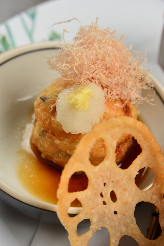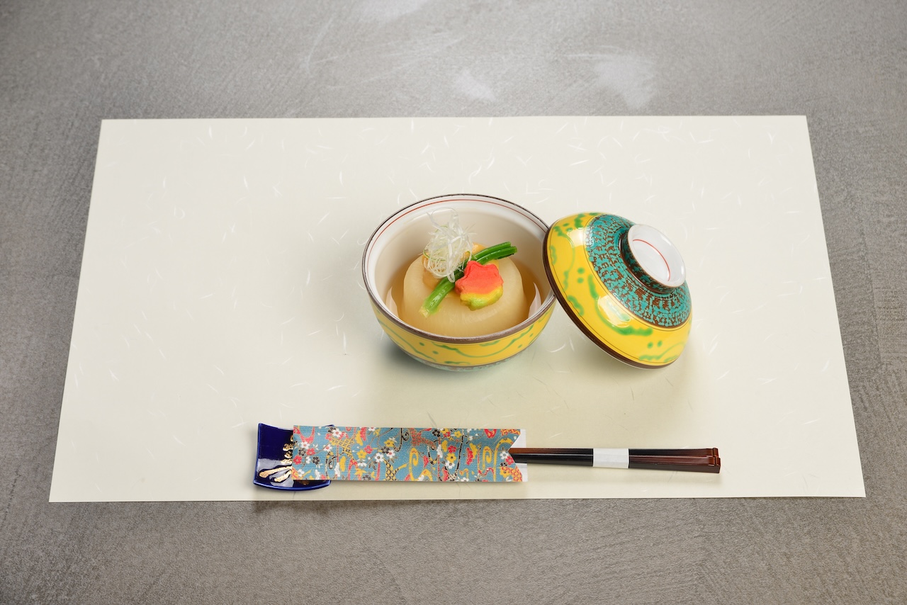 上澄みの透明なお出汁に、冬の気配が溶け込む。鱸の旨味が繊細に広がり、みぞれ仕立てのとろみが心を温める。最後の一匙まで慈しみたくなる“清らかな余韻”です。 -