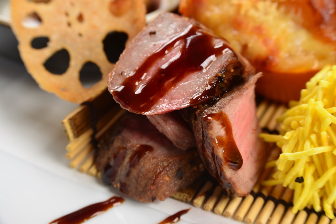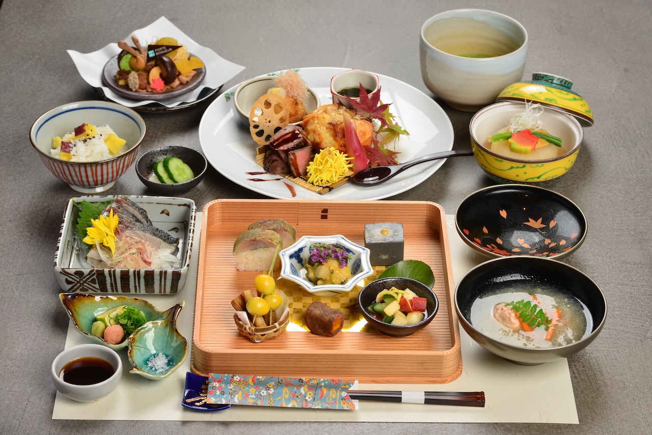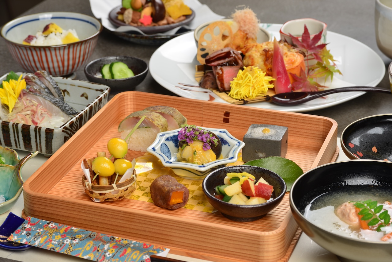 黒毛和牛炭火焼き/柿の和風グラタン/紅葉麩 鰻蓮根/鮭粕の飛龍頭