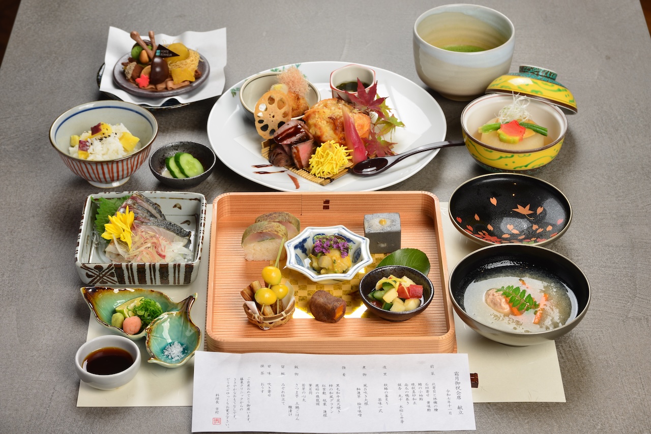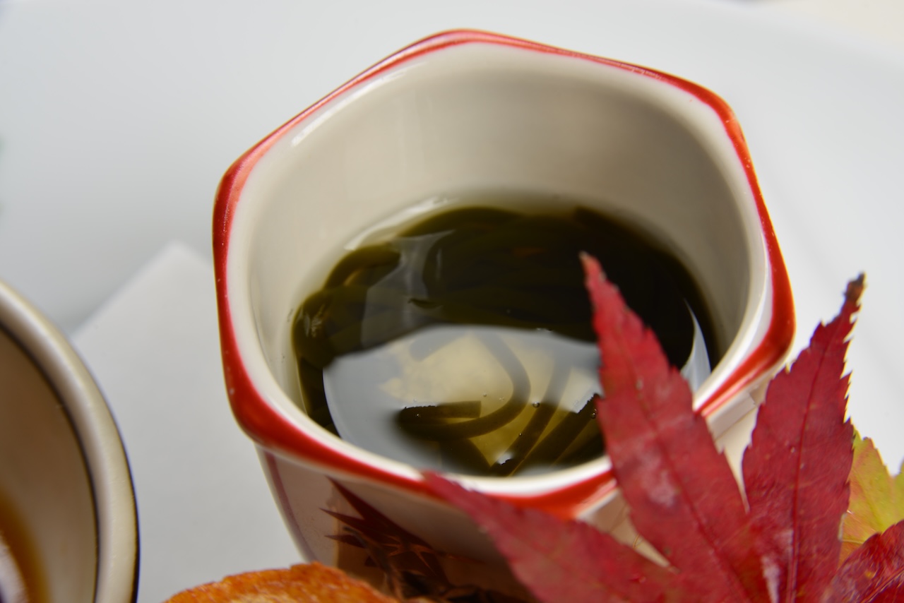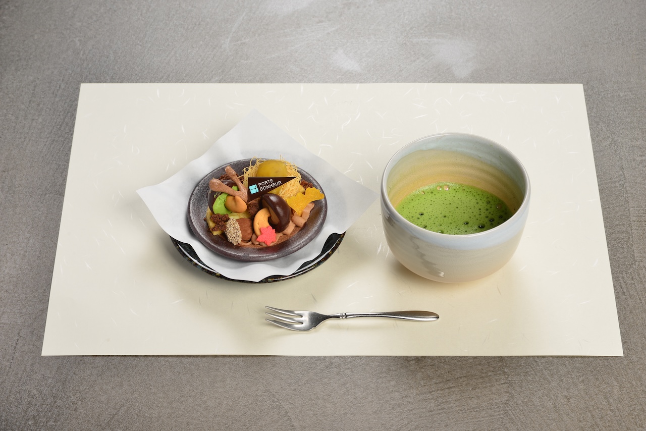舞い散る木の葉のように、少し切なくも愛しい吹き寄せ。おうすの苦みがその想いをやさしく包み込み、祝いの宴を凛として締めくくります。