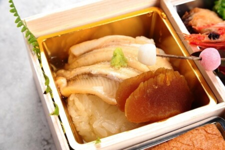 鮑酒蒸し 国産鰻八幡巻き  栗金団  和風かすてら