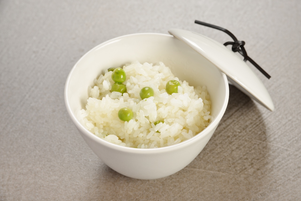 ふっくらと炊き上げた、春の息吹を感じる色鮮やかな「豆ご飯」。素材の持つ自然な甘みが口いっぱいに広がります。 - メインディッシュ:特製ソースを添えたお肉料理