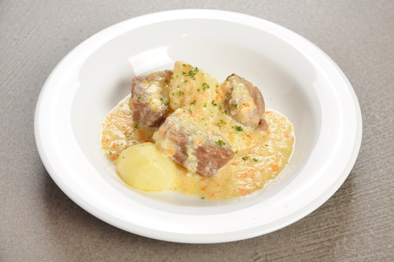 じっくりと柔らかく煮込んだお肉に、お野菜の旨味が溶け込んだ特製ソースをたっぷりと。添えられたジャガイモの優しい味わいとともに、心も体も満たされる一品です。 - 彩り豊かな副菜の数々
