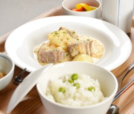 木製のトレイと白を基調とした清潔感のある器に盛り付けられたお料理は、まるで上質なカフェやレストランに訪れたかのような特別感を演出します。