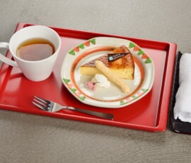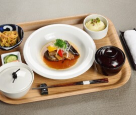 ここでお召し上がりいただくお食事が、患者様にとって新しい生活への活力となり、温かな思い出の一コマになるように——。そんな願いを込めて、一皿一皿、厳選した旬の食材を用いて丁寧にお作りしています。