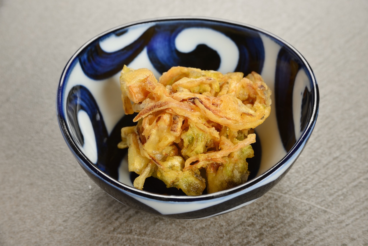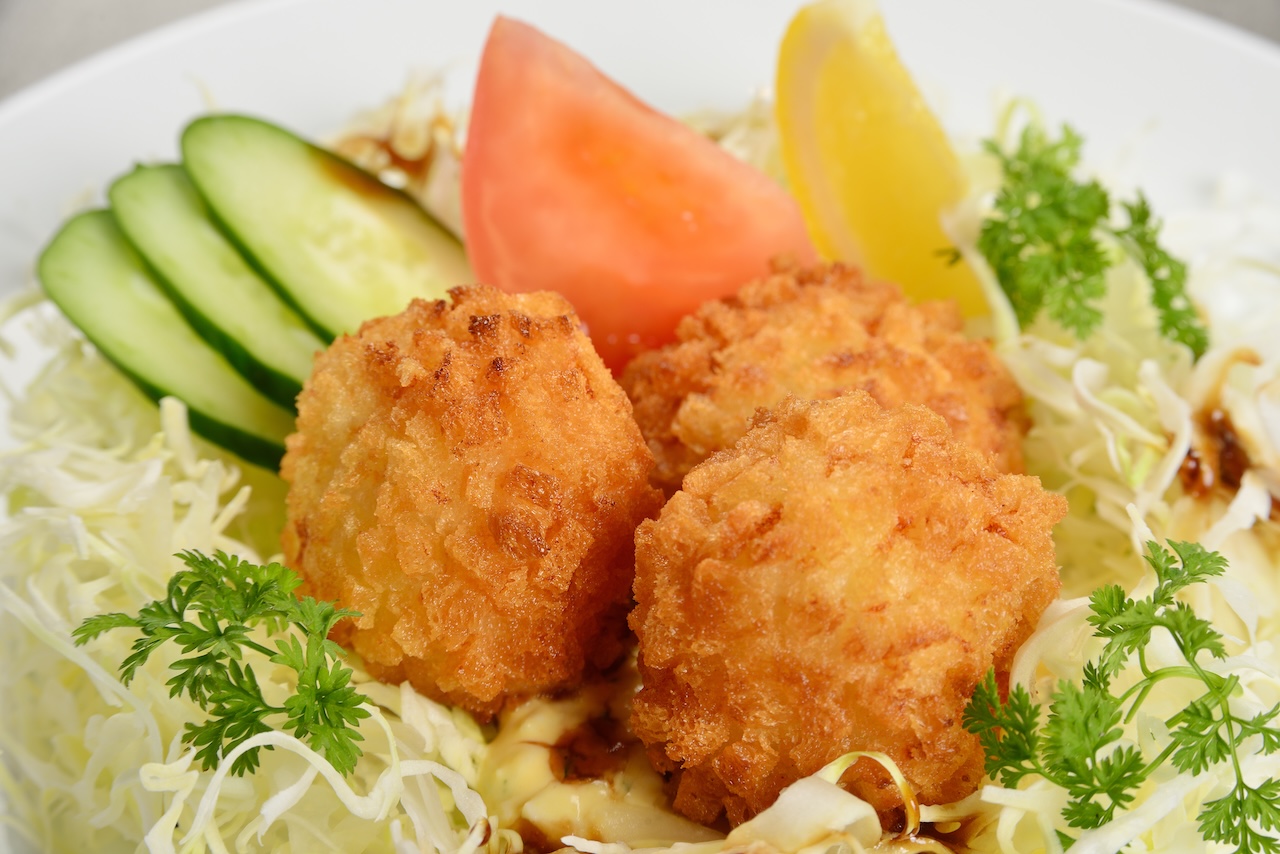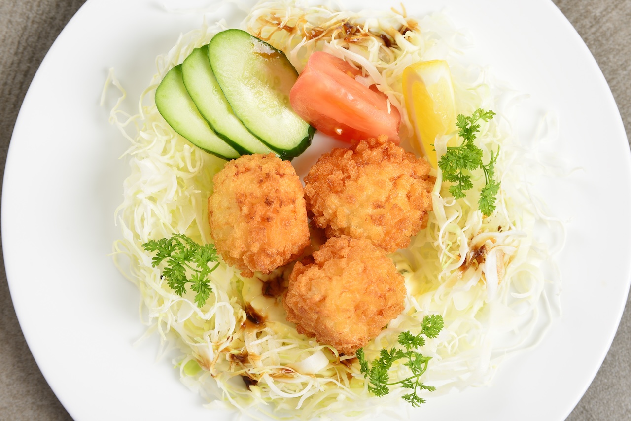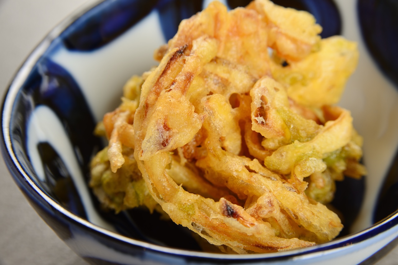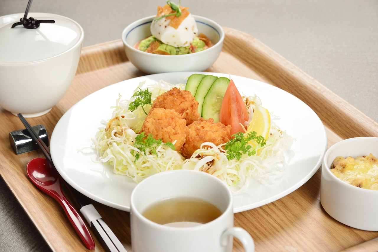 香ばしく揚げられた海老しんじょや、お野菜のかき揚げなど、食欲をそそるメニューもご用意。新鮮な生野菜やレモンを添え、後味はさっぱりと。栄養バランスを考慮しながら、満足感のある献立を心がけています。